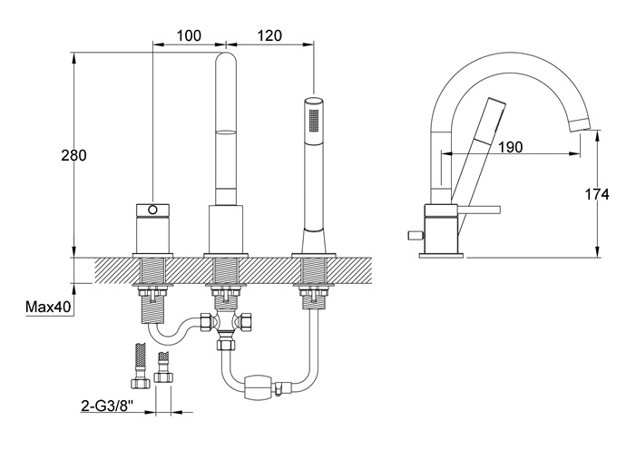 Strona główna/BATERIE/BATERIE WANNOWE/BATERIE NAWANNOWE/Kohlman Axel bateria wannowa 3otworowa z obrotową wylewką QB241A