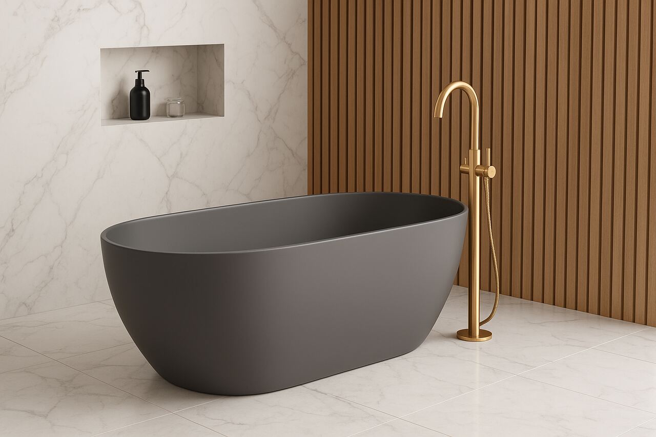 Bateria wannowa wolnostojąca Axel Gold QF1165AGD to eleganckie i luksusowe rozwiązanie do łazienek z wolnostojącymi wannami. Wykończenie w kolorze złota w połączeniu z obrotową wylewką zapewnia wygodę użytkowania oraz wyjątkowy design, który podkreśla prestiż wnętrza. Bateria Axel Gold QF1165AGD doskonale pasuje do nowoczesnych i luksusowych łazienek, w których wanna ustawiona jest wolnostojąco. Złote wykończenie oraz obrotowa wylewka łączą funkcjonalność z elegancją, tworząc wyjątkowy akcent dekoracyjny.