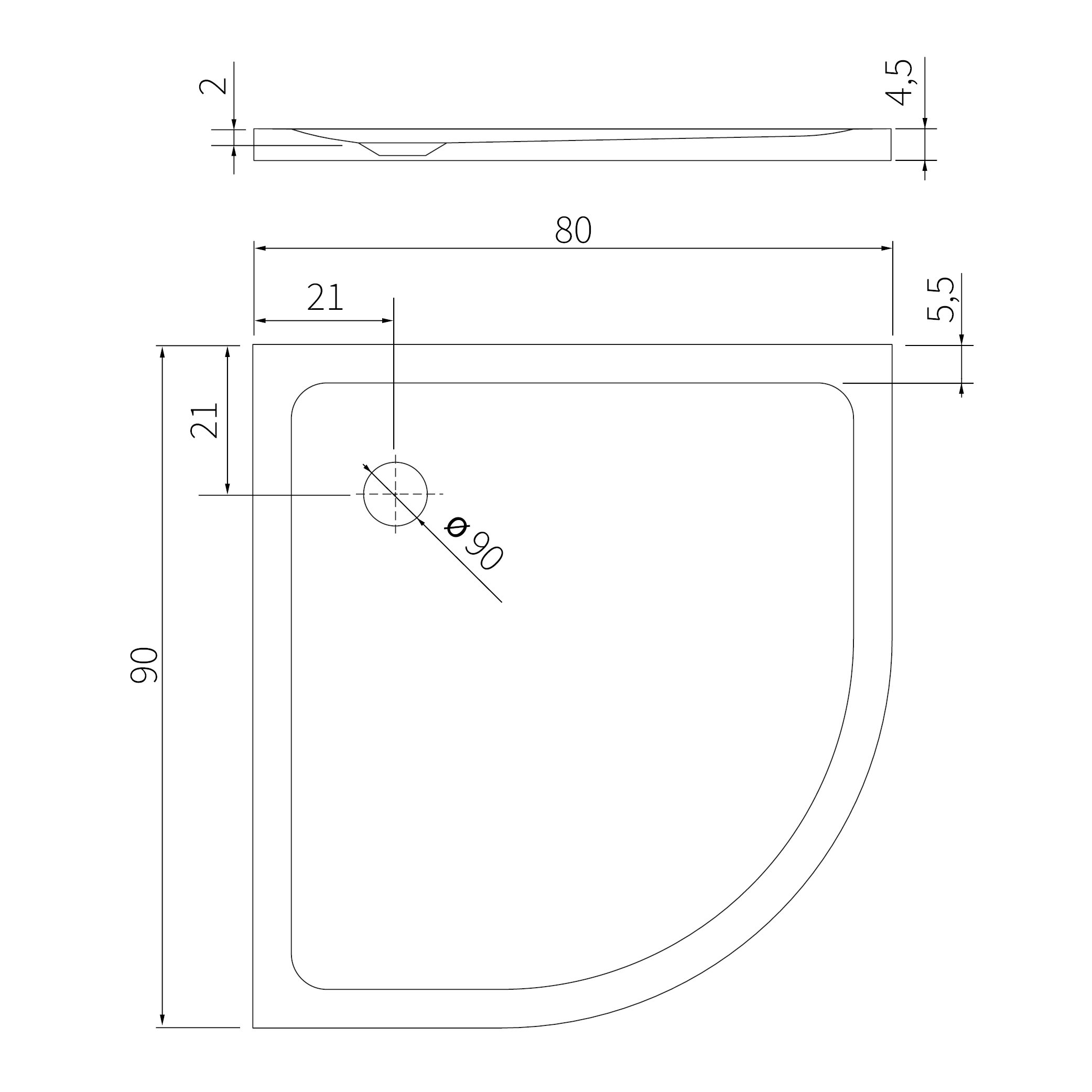 Cechy brodzika prysznicowego asymetrycznego Mild 80x90: