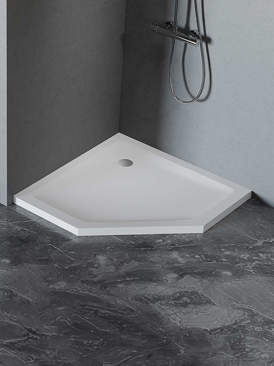 Biały matowy brodzik pięciokątny 90x90x4,5 Mild Stone