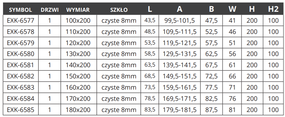 | KOD | Szerokość drzwi | Dostępność | Cena | ||
