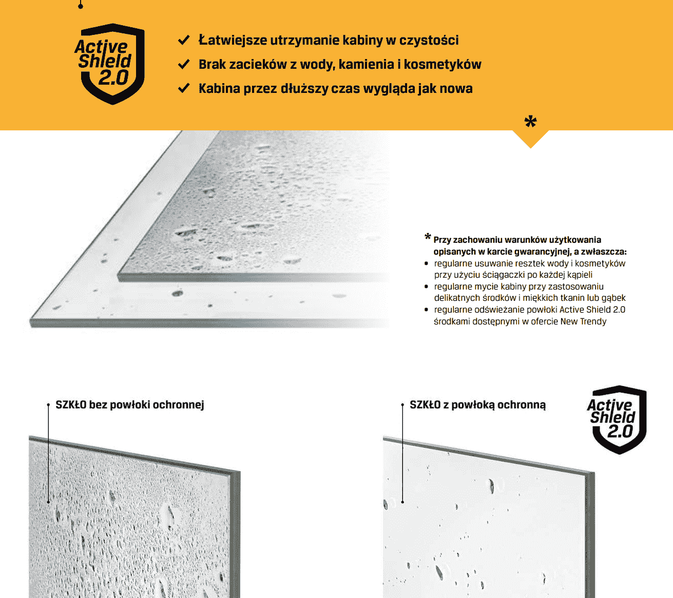 ŁATWE UTRZYMANIE CZYSTOŚCI - SZKŁO Z POWŁOKĄ HYDROFOBOWĄ ACTIVE SHIELD 2.0