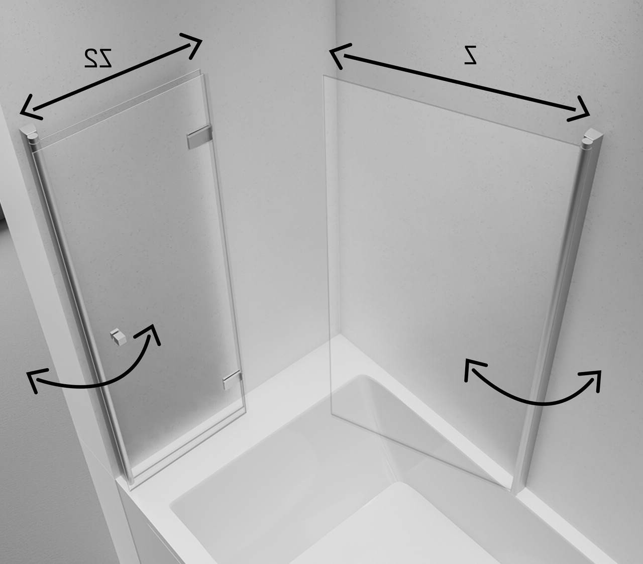 Kabina / parawan nawannowy 100x70 dwuskrzydłowy do montażu na wannie. Podwójne skrzydła pozwalają stworzyć strefę prysznicową wewnątrz wanny i zabezpieczyć pozostałą część łazienki przed wychlapywaniem wody. Parawan uniwersalny lewy lub prawy. Dzięki zastosowanym zawiasom kolumnowym uchylnym na zewnątrz i do wewnątrz można złożyć go na ścianę w dowolną stronę, aby nie przeszkadzał po zakończonej kąpieli.
