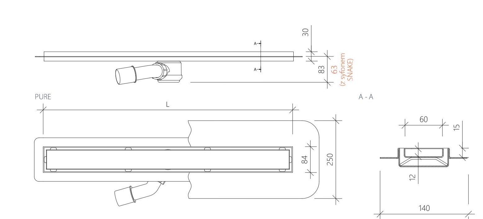W standardowym zestawie znajduje sie niski syfon SNAKE. Możliwość zmiany syfonu na Drop 35 lub Drop50.