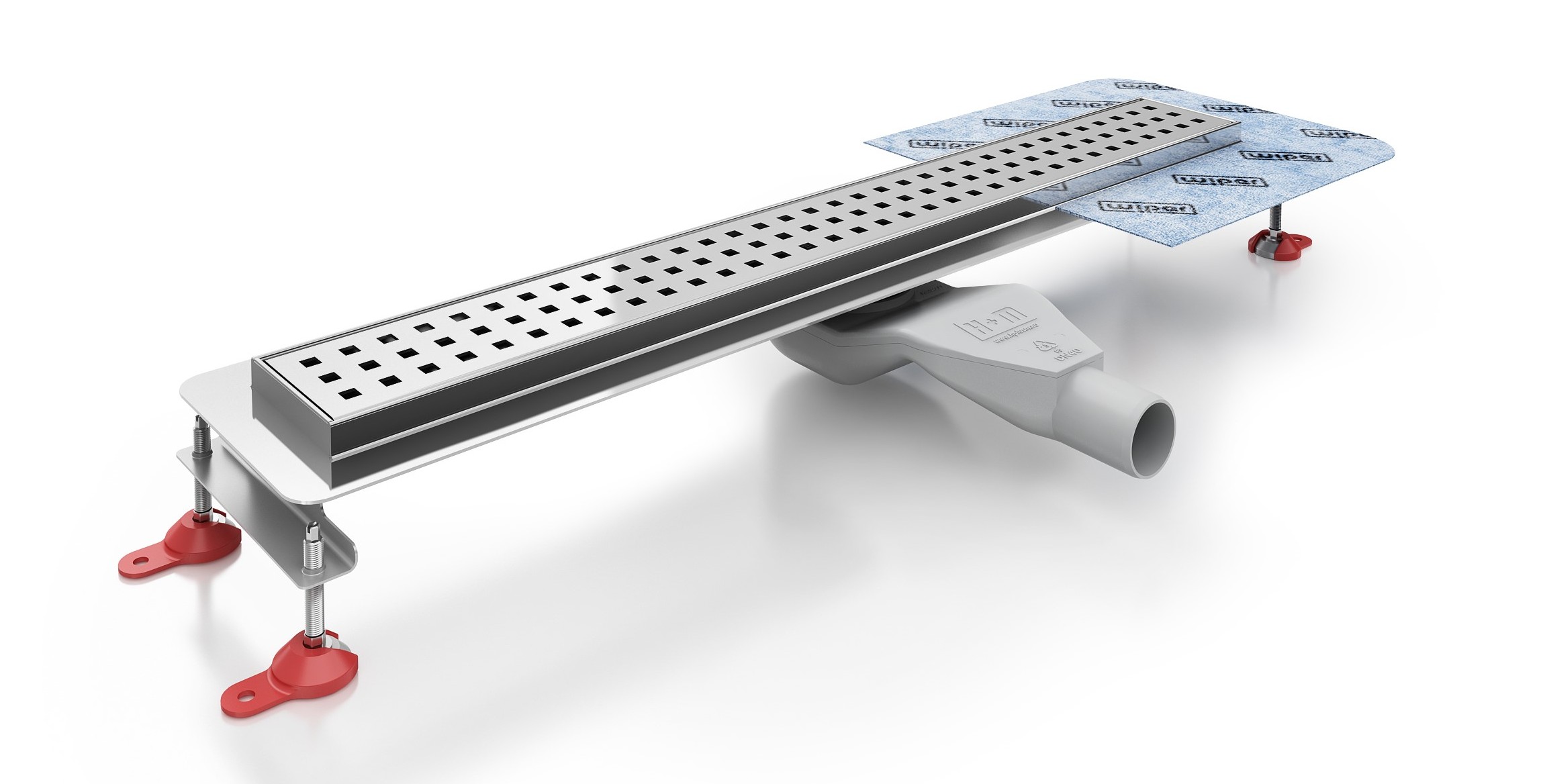 Wysokiej jakości kompletny zestaw odpływowy New Premium 90cm stanowi gotowe do montażu odwodnienie. Rynna wykonana z kwasoodpornej stali nierdzewnej gwarantuje trwałość oraz odporność na korozję. Płaski kształt syfonu i jego niewielka wysokość (4,5 cm) pozwala ograniczyć głębokość zabudowy. Znajdzie więc on zastosowanie w każdej łazience, nawet w miejscach o niskiej wysokości posadzki, np. w blokowych łazienkach.