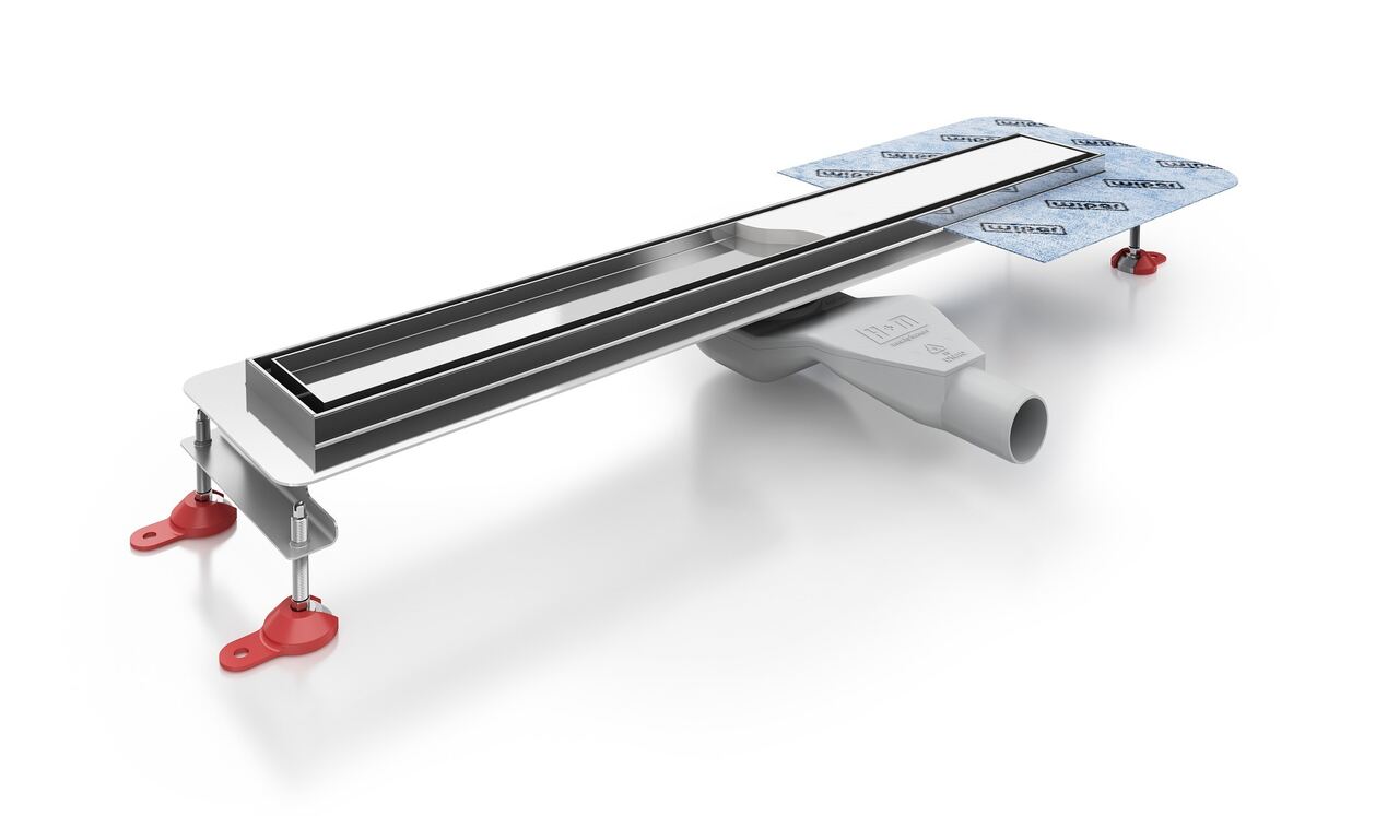 Wysokiej jakości kompletny zestaw odpływowy New Premium Pure 90 cm stanowi gotowe do montażu odwodnienie. Rynna wykonana z kwasoodpornej stali nierdzewnej gwarantuje trwałość oraz odporność na korozję. Płaski kształt syfonu i jego niewielka wysokość (4,5 cm) pozwala ograniczyć głębokość zabudowy. Znajdzie więc on zastosowanie w każdej łazience, nawet w miejscach o niskiej wysokości posadzki, np. w blokowych łazienkach.