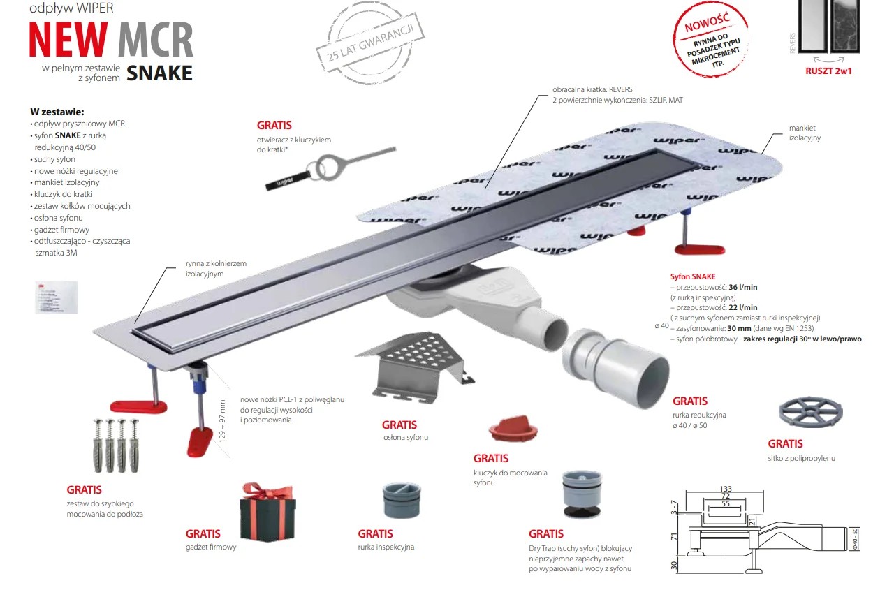 Do odpływu MCR warto dokupić zestaw uszczelniający Wiper