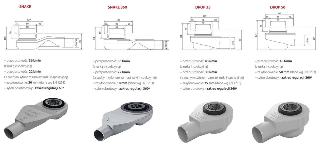 syfon do wyboru: Snake / Snake 360/ Drop35 / Drop 50