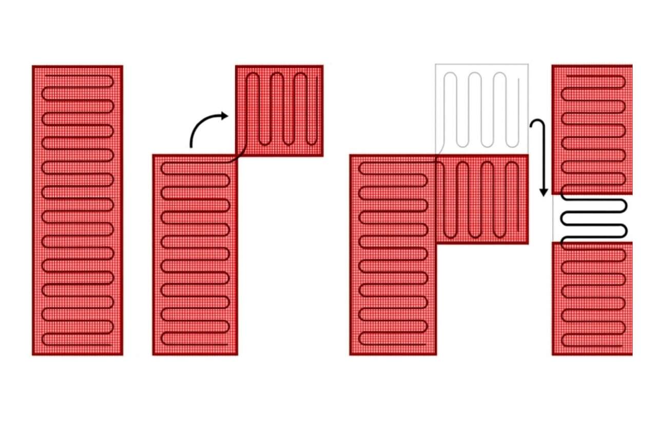 Matę grzewczą Sunfloor 50 cm x 8 m można łatwo dopasować do wnętrza – siatkę można przyciąć i obrócić, by ominąć przeszkody lub meble. Trzeba jedynie uważać, aby nie przeciąć przewodu grzejnego.