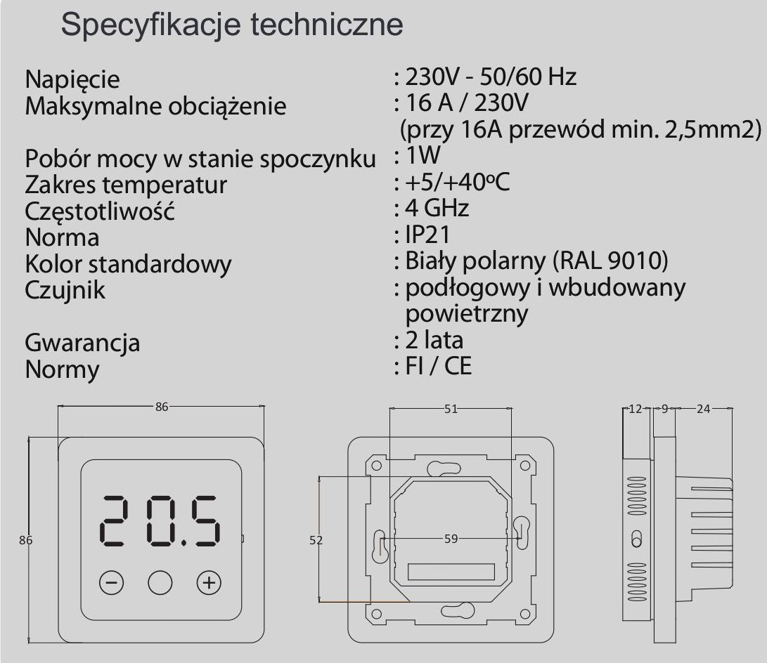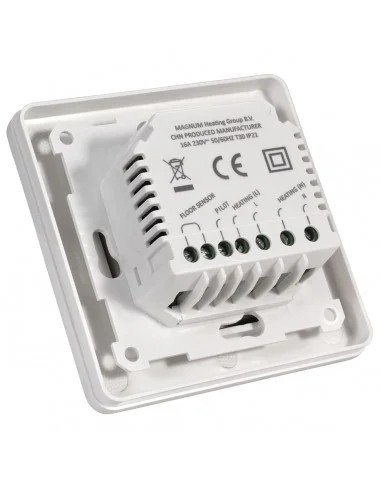 Sterownik F32 WiFi do elektrycznego ogrzewania podłogowego to nowoczesny, programowalny termostat sterowany z poziomu aplikacji mobilnej. Urządzenie wyposażono w duży, czytelny wyświetlacz oraz intuicyjny panel dotykowy. W zestawie znajduje się czujnik temperatury podłogi, a sam termostat posiada również wbudowany czujnik powietrzny.